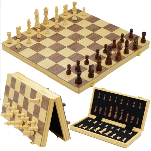 Classic Modern Magnetic Wooden Chess Pieces Games Foldable Board Set Traditional Games Toy for Men Adult with Queens